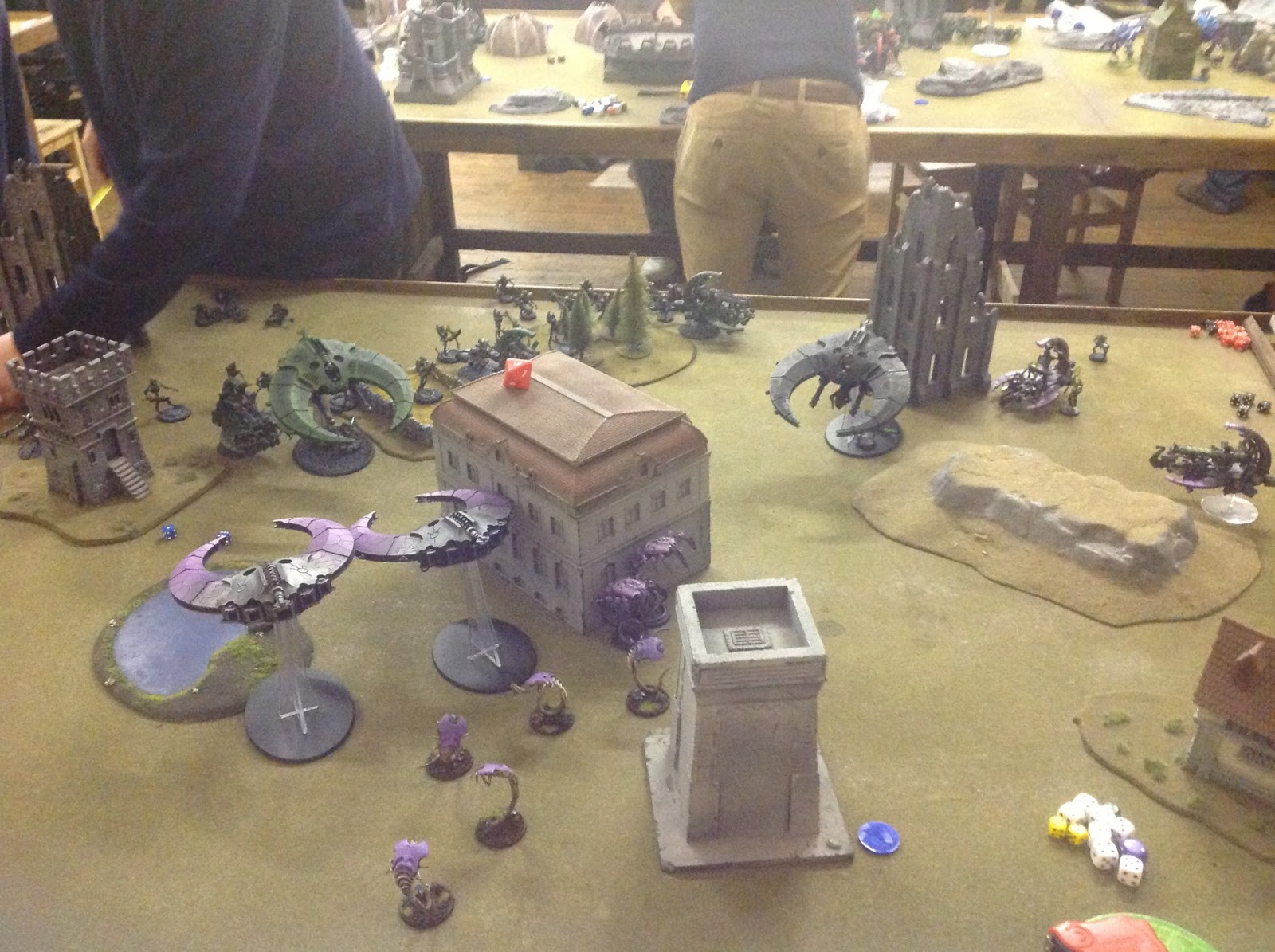 Rob goes first, deploying with Wraiths up front of his Barges over to the left hand side of the board. This is where the greatest density of objectives are, although as you can see across these photos, they are well spread, one objective in each table quarter, one in the middle of the board (NOVA style).